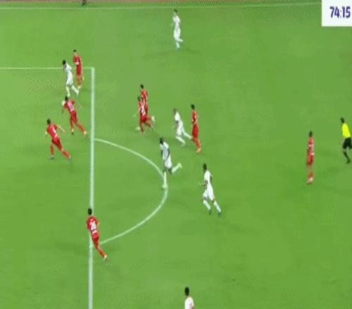 第74分钟,韦林顿分球,宋文杰禁区右肋横传,小禁区无人盯防的兰克尔泽近距离挑射偏出才,错失破门良机。