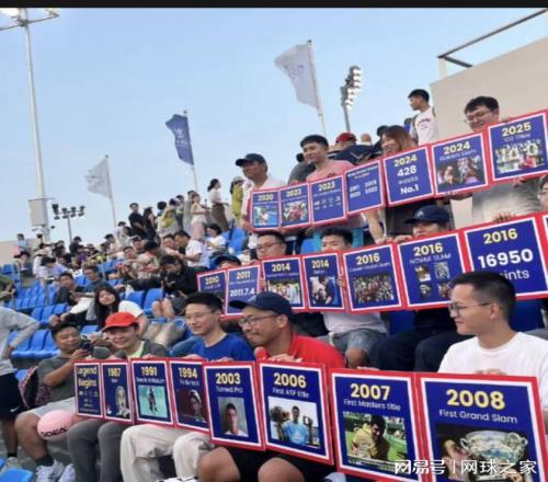 一众球迷们将德约几乎每年当中的重要时刻都选取出一个,制成海报带到了赛场上。那么都有哪些呢?让我们一探究竟。