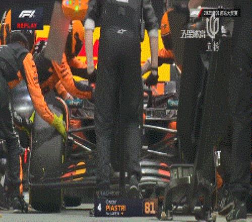第27圈,诺里斯进站后维斯塔潘顺利回到第2并获得了近4秒的优势。随后一圈,皮亚斯特里进站,右前和左后两侧轮胎在换胎时都出现了问题,导致皮亚斯特里进站耗时达到5.2秒。