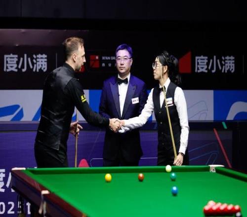 在特鲁姆普与女子选手吴安仪的比赛里,特鲁姆普打出两杆破百,其中一个是147满分。他以9杆147追平宾汉姆,位居历史第5位。小特也以5-2顺利晋级。