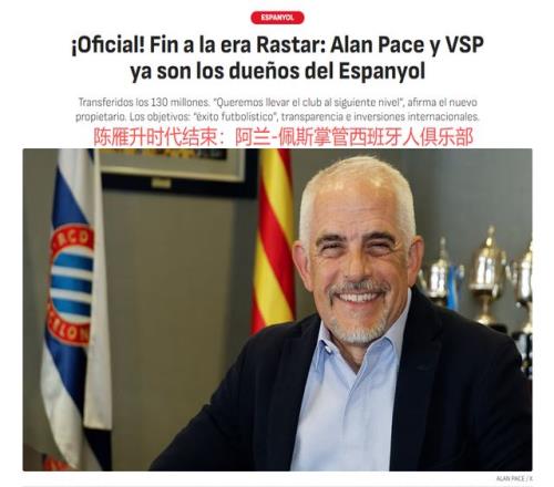 这则通告,意味着55岁的陈雁升不再担任西班牙人俱乐部主席,西班牙人的10年中资俱乐部身份,已经画上句号。