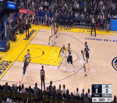 很快,比尔就拿到了快船生涯的首分,是罚球线食糊位(粤语,意思得心应手十拿九稳)急停干拔中投。