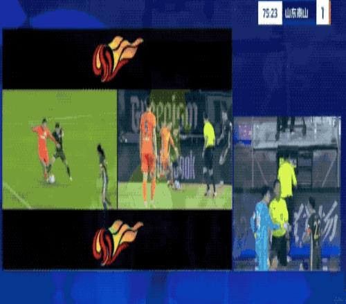 第76分钟,VAR再度介入,和程进对抗后,李源一倒在了禁区内,裁判回看后改判点球。