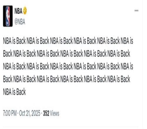 @NBA官方也是难掩激动之情,就在刚刚发布了一条含有23个“NBA is Back”(NBA回来了)的社媒。