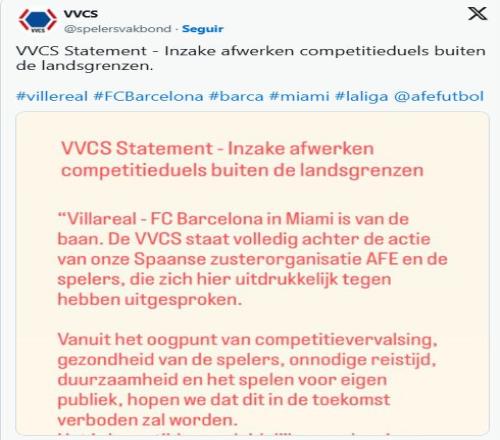 荷兰球员联盟发文抵制西甲海外联赛:这种行为应永久被禁止