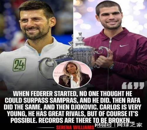 当被问及是否认为阿尔卡拉斯能够打破德约科维奇的24个大满贯冠军纪录时,小威廉姆斯表示:“在这一点上,一切皆有可能。”