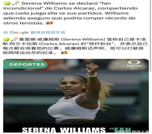 小威廉姆斯解释道,自己对阿尔卡拉斯的赞赏源于她对西班牙网球的长期关注。
