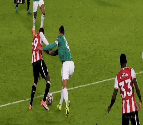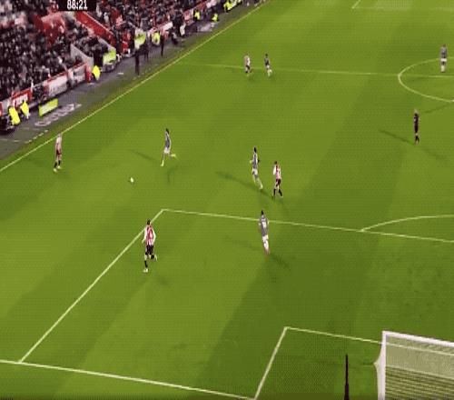 上半场的尾声阶段,利物浦攻势如潮,加克波倒在禁区内,裁判没有任何表示。第45分钟,利物浦前场传球被抢断,布伦特福德打出快速反击,达姆斯高助攻沙德破门。