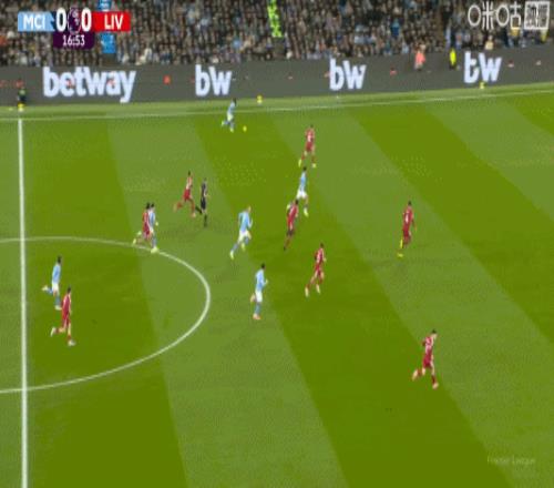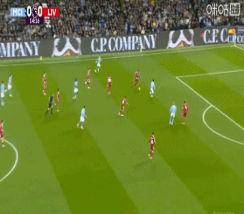 第16分钟,B席脚下打滑,最后放倒了范戴克