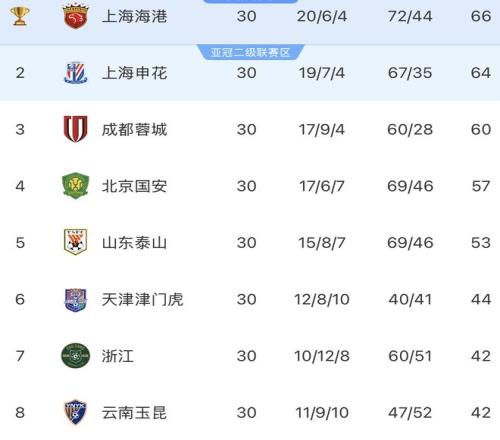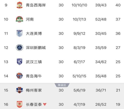 北京时间11月22日,中超联赛第30轮,即本赛季最后一轮比赛开打。在本轮比赛之前,还有3个悬念等待揭晓,冠军队将在上海双雄中产生,海牛、梅州争夺1个保级资格,中超最佳射手也没有确定。现在,随着海港1-0大连,泰山+国安皆5-1,蓉城1-1,中超收官积分榜出炉。