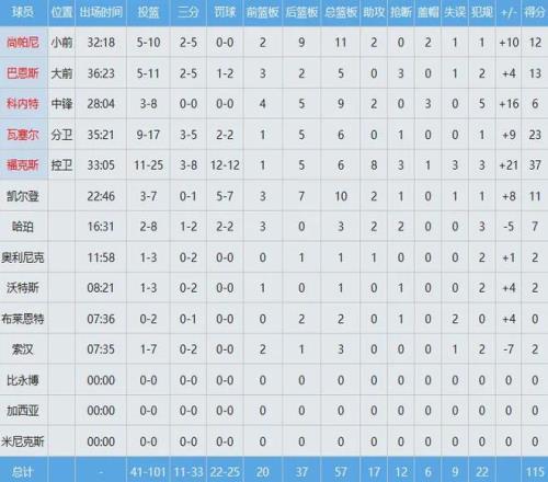 马刺数据如下: