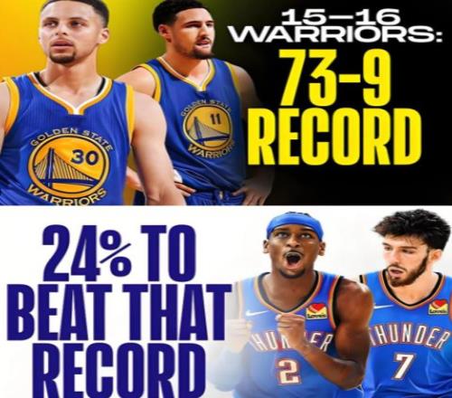 至于雷霆,他们本赛季有没有机会打破73胜勇士的历史纪录呢?