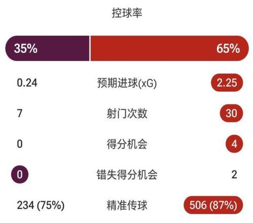赛后一看数据,射门次数7-30,射正次数1-10,控球率35%-65%。曼联客场踢出这优势,愣是没转化成胜利!