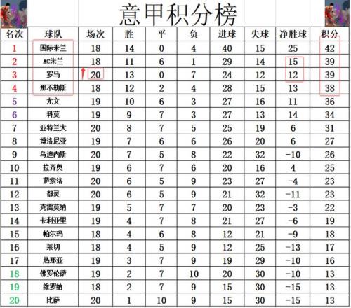 积分榜方面,国米3分优势继续领跑,罗马今天赢球后,多赛2场的情况下,超过尤文,那不勒斯,追上AC米兰,净胜球劣势排在第3。黑马科莫无力击败博洛尼亚,他们就错失超过尤文升进前5的机会。