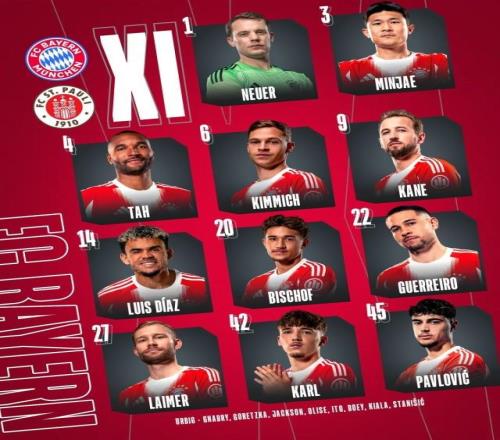【首发】奥利塞轮休,凯恩劳模依旧德甲 11-29 21:19北京时间11月29日22:30,德甲第12轮,拜仁慕尼黑主场迎战圣保利。拜仁公布首发,劳模凯恩领衔锋线,迪亚斯先发,奥利塞轮休。与帕梅