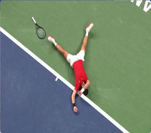 昨天晚上,上海大师赛第四轮德约科维奇对阵穆纳尔的比赛第二盘结束的那一刻,塞尔维亚球王躺倒在上海旗忠网球中心球场的硬地上,汗水浸透衣衫,仿佛已经没有力气起身。几乎所有目睹