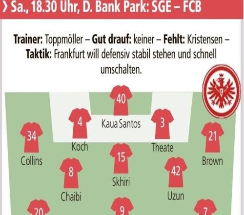 雷速体育10月4日宣 北京时间10月5日00:30,德甲第6轮,法兰克福坐镇主场迎战德甲领头羊拜仁慕尼黑,本场比赛开始之前,德国媒体《慕尼黑日报》预测了双方的首发阵容,拜仁慕尼黑由目