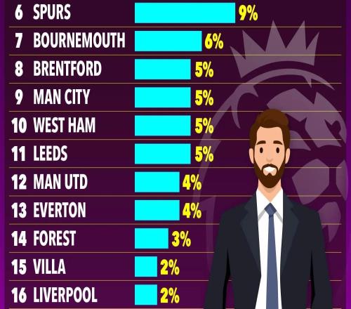 雷速体育9月28日宣 英超第6轮昨晚打响,在已经结束的比赛中,利物浦1-2遭水晶宫绝杀,曼城5-1伯恩利,切尔西1-3不敌布莱顿,曼联则是1-3布伦特福德。目前的积分榜中,利物浦遭遇首败后