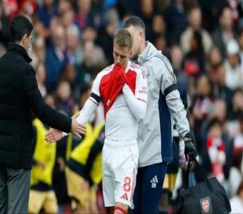 阿尔特塔:厄德高膝盖撞伤不太乐观赖斯背部有些疼痛