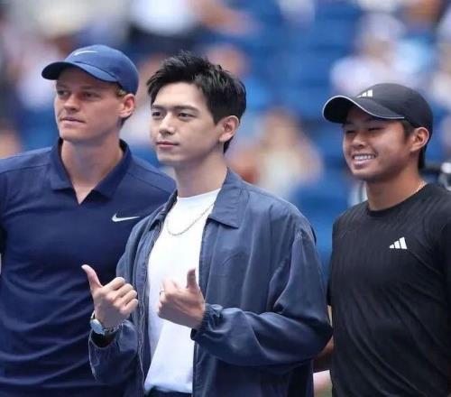 演员李现为中网男单决赛挑边,并与辛纳和勒纳-钱合影留念